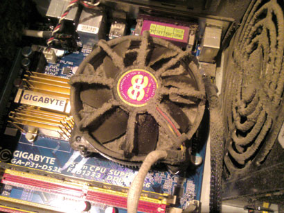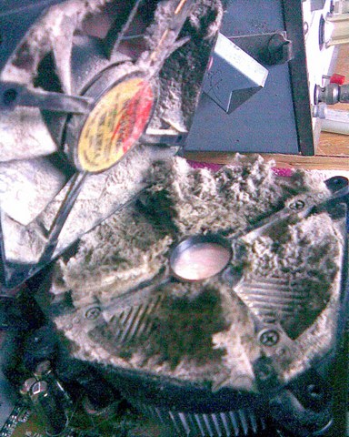 Пыль забивается между ламелями радиатора и не дает вентилятору продувать через них воздух. Соответственно радиатор практически не охлаждается и процессор тоже.