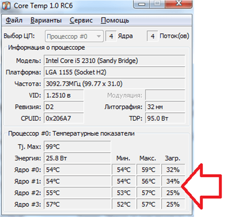 Программа Core Temp также пользуется довольно большой популярностью. Особенностью данной программы является то, что она отображает практически всю возможную информацию о процессоре. Здесь можно узнать модель процессора, его частоту, напряжение, техпроцесс, сокет и т.д. Естественно здесь можно и узнать температуру процессора. Причем программа отображает не только текущую температуру, но также максимальную и минимальную, которую ей удалось зафиксировать.