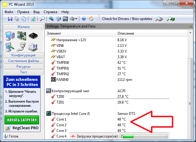 Единственным недостатком программы PC Wizard является большое количество информации, которую программа вываливает на пользователя. Иногда в этой куче не нужной информации бывает трудно найти то, что действительно нужно. Навигация по программе также организована не лучшим образом. Например, для того чтобы посмотреть температуру процессора нужно открыть раздел «Железо», а потом перейти в подраздел «Voltage, Temperature and Fans».