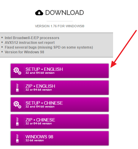 Для начала вам необходимо скачать программу CPU-Z с официального сайта. Для этого перейдите на сайт http://www.cpuid.com/softwares/cpu-z.html, нажмите на кнопку «SETUP ENGLISH».