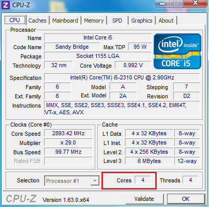 Как узнать, сколько ядер в процессоре с помощью программы CPU-Z