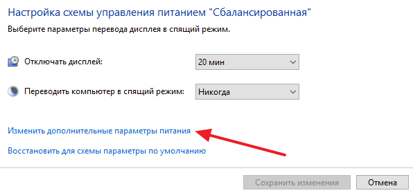 После этого нужно кликнуть по ссылке «Изменить дополнительные параметры питания».