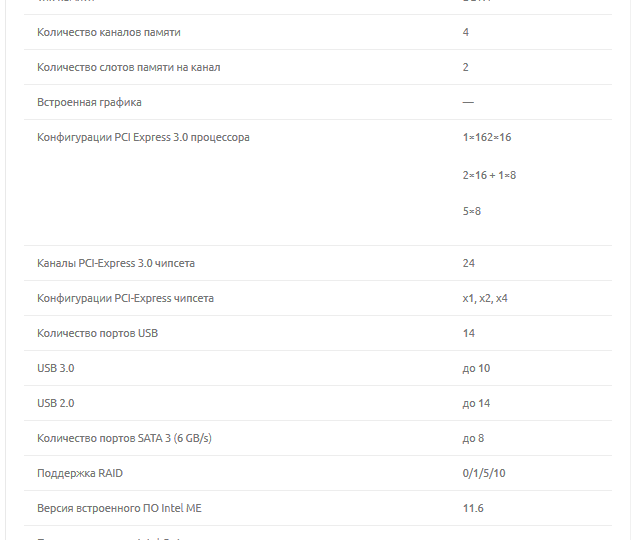 Эта же таблица (чипсет Intel X299) в виде картинки