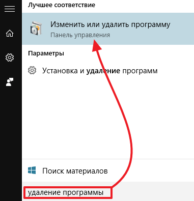 Кроме этого данный раздел «Панели управления» можно открыть с помощью поиска в меню «Пуск». Для этого достаточно ввести в поиск фразу «Удаление программы» и выбрать найденное системой приложение.