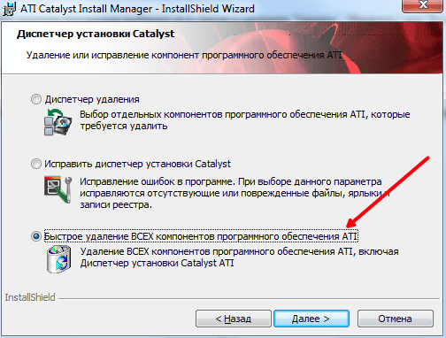 После этого откроется установщик драйверов, с помощью которого можно будет удалить драйвер видеокарты AMD Radeon.