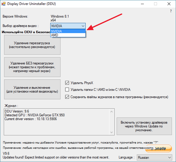 Удаление драйвера видеокарты AMD Radeon при помощи Display Driver Uninstaller