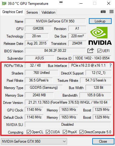 - DirectX Support – версия DirectX, которую поддерживает данная видеокарта.