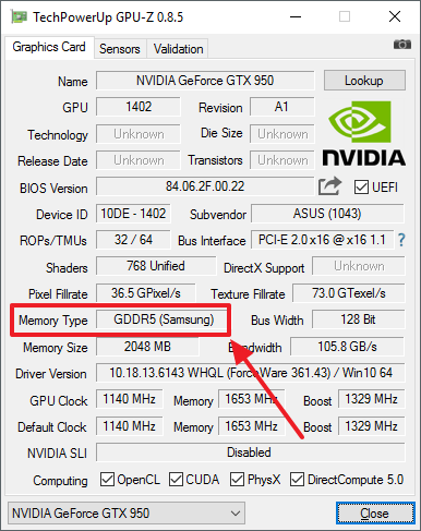 Также здесь можно узнать основные характеристики видео памяти вашей видеокарты. Например, тип используемой памяти: