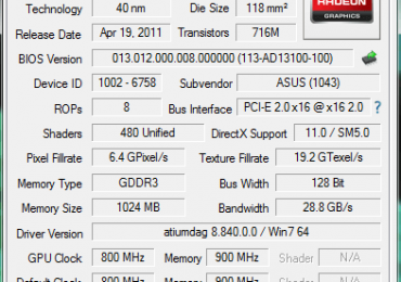 | AMD Radeon HD 7570M | Terascale 2 | 450 | 400 | GDDR5 / DDR3 | 3200 / 1800 | 64 |