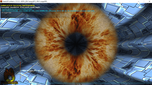 После этого, как и в случае FurMark, появится окно с большим мохнатым бубликом, это и есть стресс тест видеокарты от OCCT.