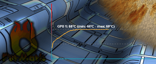 Самое важное в этом окне это график температуры, который находится в нижней части окна. Если система охлаждения видеокарты исправна, то температура сначала пойдет вверх, а потом стабилизируется на какой-то отметке. Например, на скриншоте внизу видно, что температура видеокарты стабилизировалась на отметке 68 градусов. У вашей видеокарты стабильная температура может быть другой.