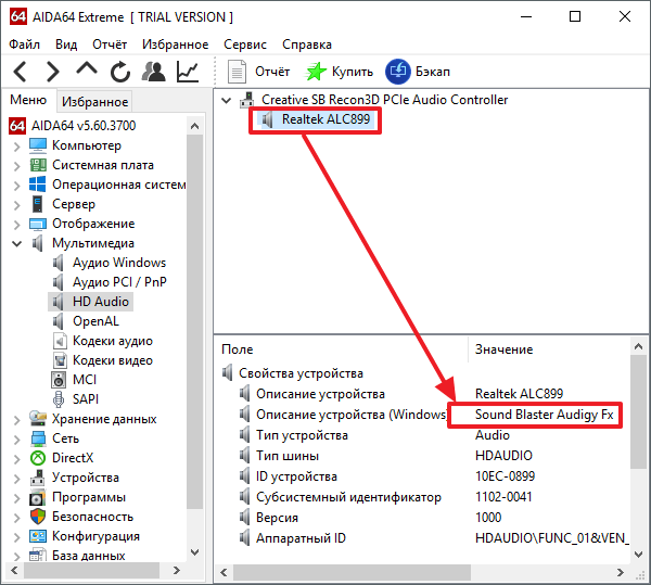 Самый надежный способ узнать, какая звуковая карта стоит на компьютере, это воспользоваться программой AIDA64 (ранее эта программа называлась Everest). Данная программа является платной, но вы можете скачать ее TRIAL-версию, которая работает 30 дней. TRIAL-версии вам вполне хватит, для того чтобы посмотреть информацию о вашей звуковой карте.