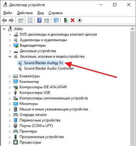 Таким образом, вы откроете окно «Диспетчер устройств». Здесь в разделе «Звуковые, игровые и видеоустройства» будет отображаться название вашей звуковой карты.