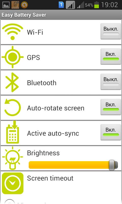 Функции этого приложения очень просты. Оно позволяет отключить или включить разные модули смартфона: