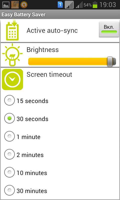 - настраивать яркость экрана и тайм-аут перехода гаджета в спящий режим;
