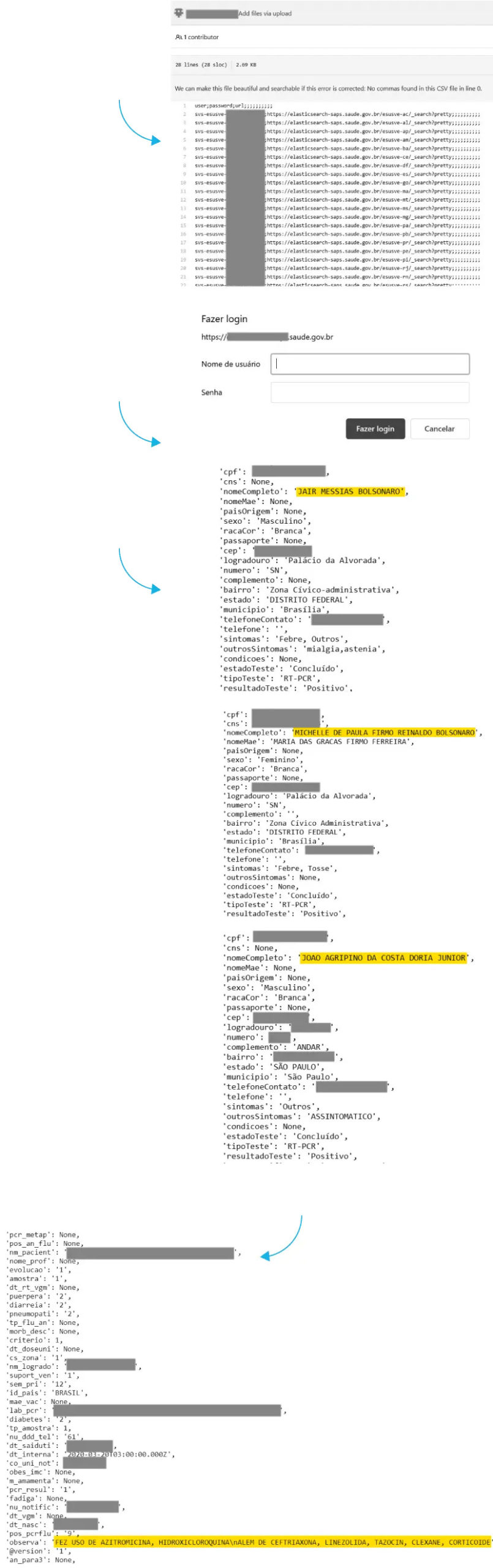 Согласно информации издания Estadao, в открытом доступе на GitHub была несколько дней размещена электронная таблица с именами пользователей, паролями и ключами доступа к информационным системам Министерства здравоохранения Бразилии. С помощью этих учетных данных, например, можно было скачать две базы данных с информацией о миллионах бразильских пациентов, включая их имена, адреса проживания, истории болезни и режимы приема лекарств.