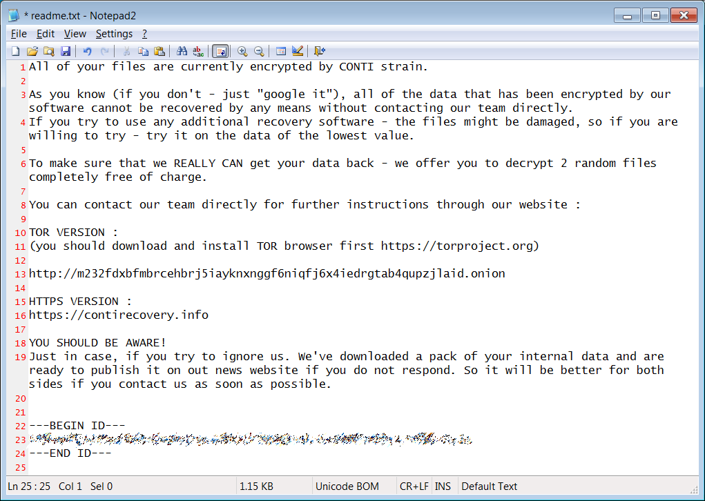 Conti по своей работе схож с кодом вируса Ryuk. Вымогатель используют для целевых атак на корпорации еще с конца 2019 года. Шифрование осуществляется благодаря алгоритмам AES-256-CBC и RSA-4096. Подобного рода атаки предпринимались на Новозеландскую фондовую биржу, MoneyGram, PayPal и Venmo.