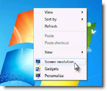 - открыв контекстное меню на пустом месте рабочего стола, выбираем «Разрешение экрана»;