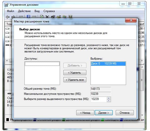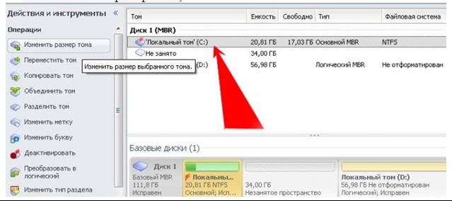 Как увеличить объем памяти на диске С