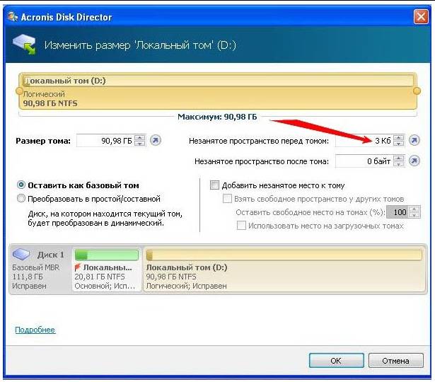 - открыть Acronis Disk Director;