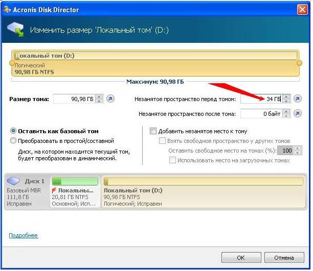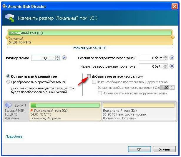 Увеличить объем вместимости носителя при установленной операционной системе можно с помощью специальных программ. Наиболее популярной и часто используемой для этих целей считается Acronis Disk Director.