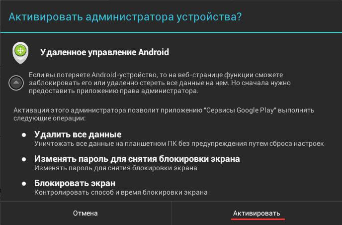 Управлять Android удаленно можно через интернет из веб-браузера. Для этого необходимо, чтобы смартфон или планшет были привязаны к учетной записи Google. По умолчанию Device Manager отключен, поэтому необходимо активировать эту функцию.