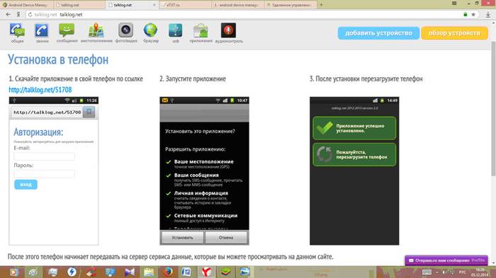 Talklog программа, от одноименного разработчика позволяющая отслеживать месторасположение гаджета, просматривать смс-сообщения, прослушивать входящие и исходящие звонки и многое другое.