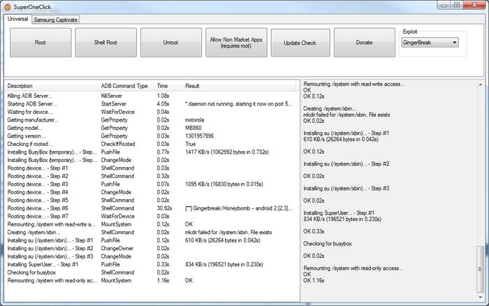 После выполнения всех выше перечисленных действий можно будет выполнить любую операцию, требующюю наличия полных прав доступа. SuperOneClick может не только разблокировать права рут, но также снова их заблокировать. Сделать это можно очень просто, достаточно выполнить в точности все перечисленные выше шаги, нажав «Unroot».