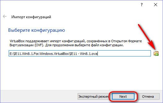 В появившемся окне с помощью кнопки обзора указываем путь к распакованному файлу OVA. Жмем «Next».