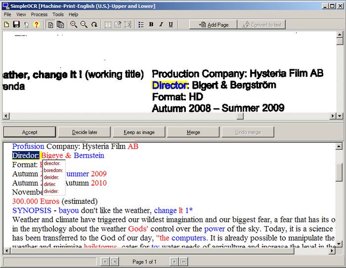 SimpleOCR – аналогичная программа для распознавания текста после сканирования. Она отлично подходит для работы с иностранными языками, так как обладает большим и постоянно совершенствующимся словарем. Помимо стандартного набора функций, обладает возможностью поиска слова или сочетания в полученном тексте и расширенными опциями форматирования. Хорошо подходит для обработки объемных текстов.