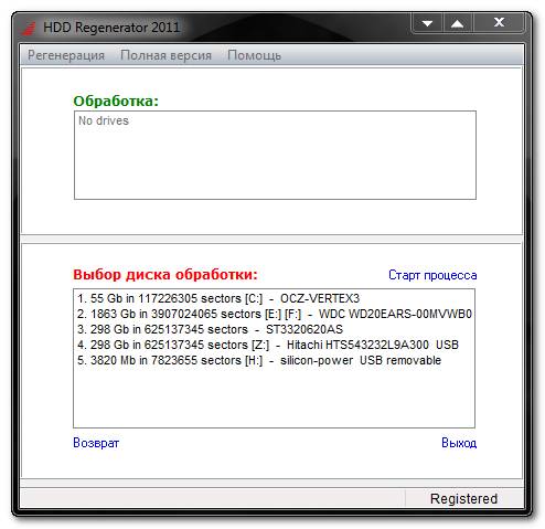 - Regenerator. При помощи этой небольшой и простой в эксплуатации утилиты вы сможете устранить даже большой процент физических повреждений (сбойных секторов) с поверхности тестируемого винчестера. Происходит это благодаря инновационному алгоритму последовательностей сигналов и перемагничиванию поврежденных секторов. Таким образом, данная утилита способна восстановить утраченные данные без какого-либо влияния на остальную информацию, сохраненную на том же компьютере.
