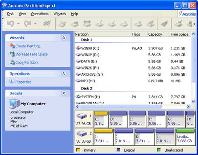 - Acronis. Целый комплекс софта по работе с винчестерами, среди которого имеется и мощная программа для сканирования, восстановления и резервного копирования данных. Этот набор утилит, включающий множество удобных сервисов и тестов, по праву считается одним из лучших для работы с жесткими дисками. Из-за своего удобства, простоты и доступности данный комплект используется сотнями тысяч пользователей из десятков стран мира.