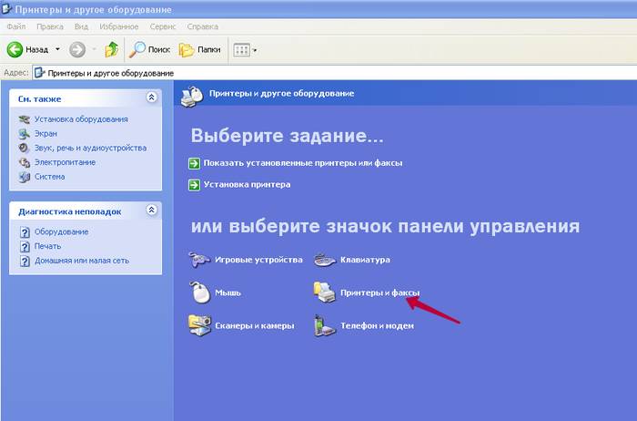 - затем следует выбрать пункт принтеры и факсы;