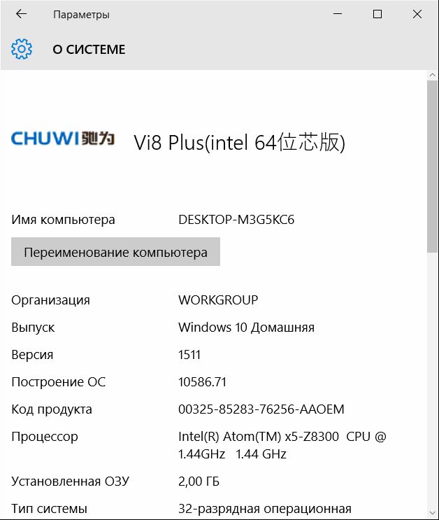 Chuwi Vi8 Plus использует одну из новых систем на чипе от Intel, которая основана на четырехъядерном процессоре Intel Atom X5-Z8300 нового поколения (Cherry Trail) с максимальной тактовой частотой 1.84 ГГц и интегрированным графическим ядром Intel HD Graphics.
