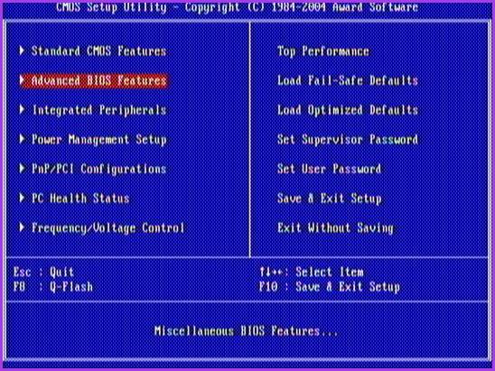 Одна из самых известных версий Bios – это Award. Тут нет возможности вызова меню для выбора приоритета запуска. Поэтому сразу переходим к настройке биоса.