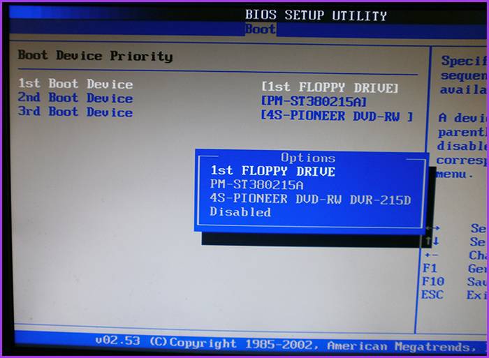 - выбрать самый верхний раздел под названием «Boot option priorities» (опции загрузки по приоритету);