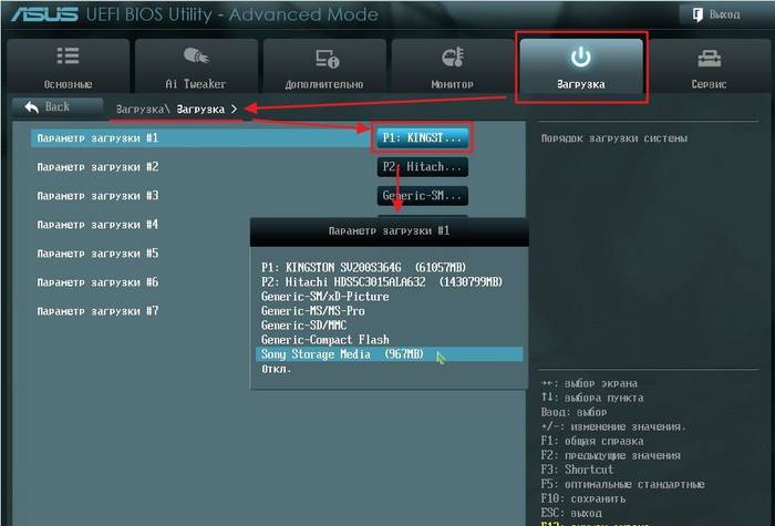 Очередность выбора устройств для запуска определяется настройками Bios – встроенной микропрограммой, предназначенной для обеспечения доступа операционной системы к API устройств.