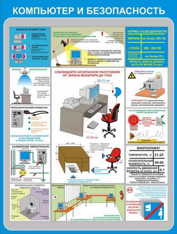 Техника безопасности при работе с компьютером на предприятии предусматривает наличие общедоступной инструкции, в которой указаны обязательные требования к обустройству рабочего места и процессу использования техники. Эти правила едины для всех организаций, их выполнение контролируется руководящими органами.