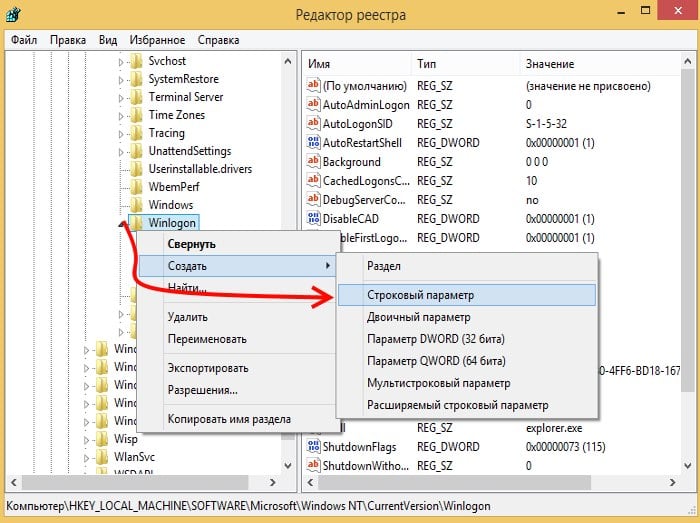 Создаем строковой параметр в реестре И назовите его этим именем. В реестре необходимо вводить данные в таком формате «»DefaultUserName»=»user»», соблюдая все кавычки.