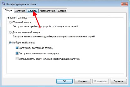 - Вы увидите, как откроется окно. В нем нужно выбрать вкладку «Службы»;
